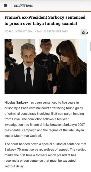 résumé du jugement pénal >>> " Sarkozy / affaire libyenne " >>> Les médias français, épris d'une "forme d'hygiène démocratique du statut de l'information", évoquent effectivement de temps en temps « association de malfaiteurs » à l'encotre de Sarkozy, mais sans en définir précisément avec qui. Non, pas avec Kadhafi, mais avec son beau frère Abdallah Senoussi. Les médias, tous plus policés les uns que les autres et en hystérie devant la sortie provisoire de prison de Sarkozy, mettent totalement sous silence que le jugement du Tribunal correctionnel de Paris du 25 septembre 2025 reconnaît un pacte de corruption, pour financer sa campagne présidentielle de 2007, scellé entre Sarkozy et Abdallah Senoussi, beau frère de Kadhafi, qui a commandité l’attentat contre l’avion DC 10 de la compagnie UTA en 1989. Ce pacte de corruption a motivé la condamnation de Sarkozy, ancien président de la République, à cinq ans de prison pour « association de malfaiteurs » ( >>> pdf du jugement pénal complet).