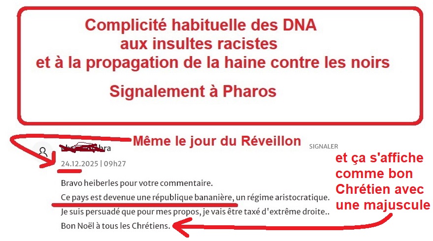 et un des commentaires habituellement racistes que les DNA republient très régulièrement